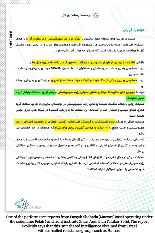 Others included “identifying targets related to Israel’s nuclear activities, for offensive operations and disruption” and “designing cyber operations aimed at creating discontent and unrest in Israel and disrupting the lives of settlers.”