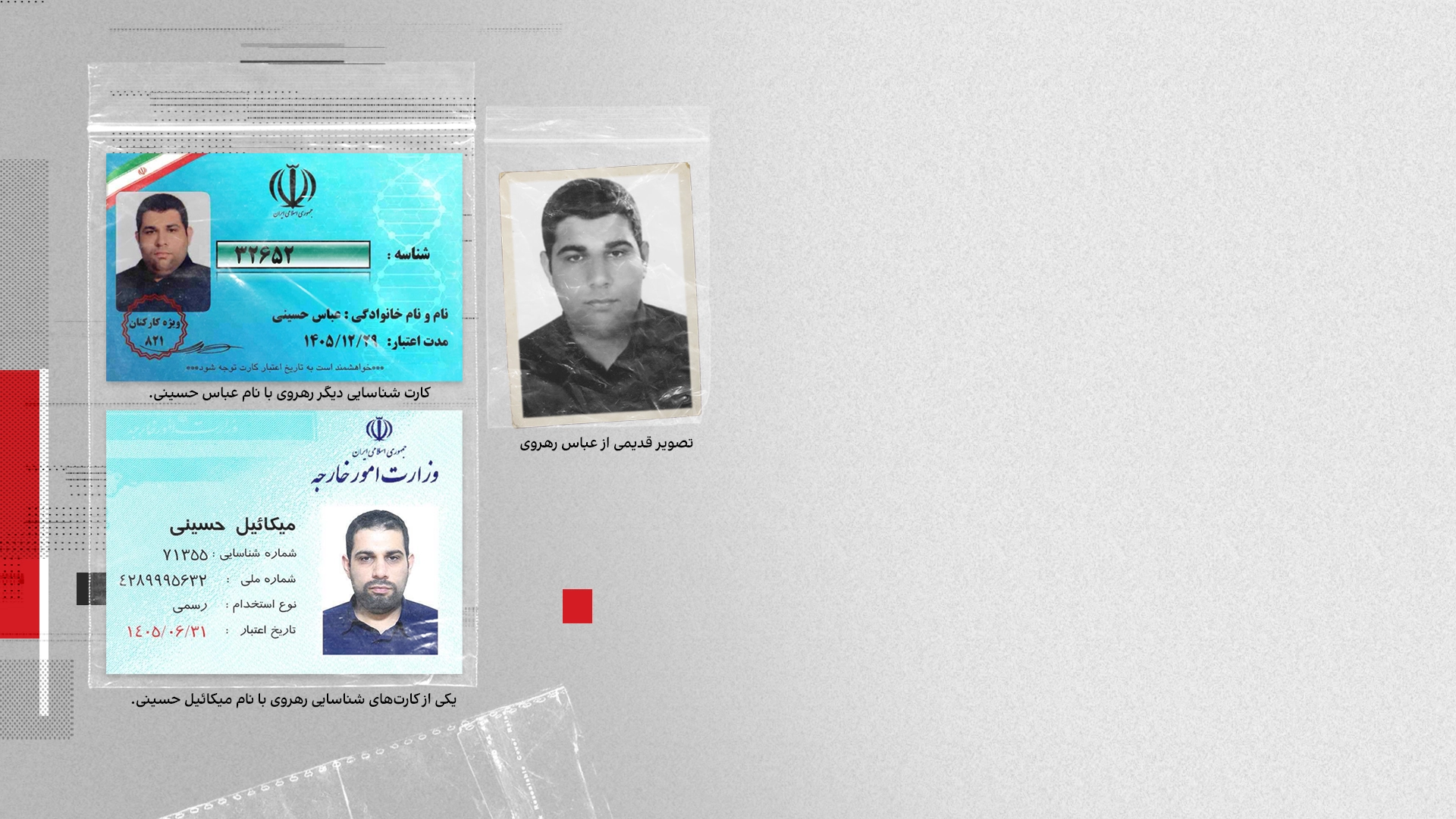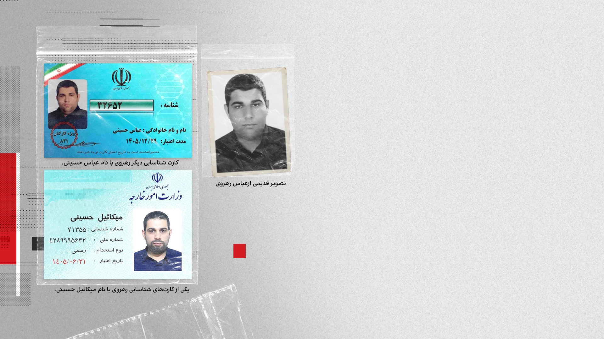 پس از جذب در این سازمان، او هویت دیگری به نام «میکائیل حسینی» دریافت کرد. رهروی در تشکیلات سپاه پاسداران با نام مستعار «عباس حسینی» شناخته میشود.